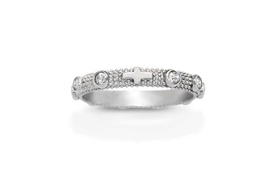 Si tratta di anelli rosario dal design unico, realizzati in argento 925 rodiati con zirconi.