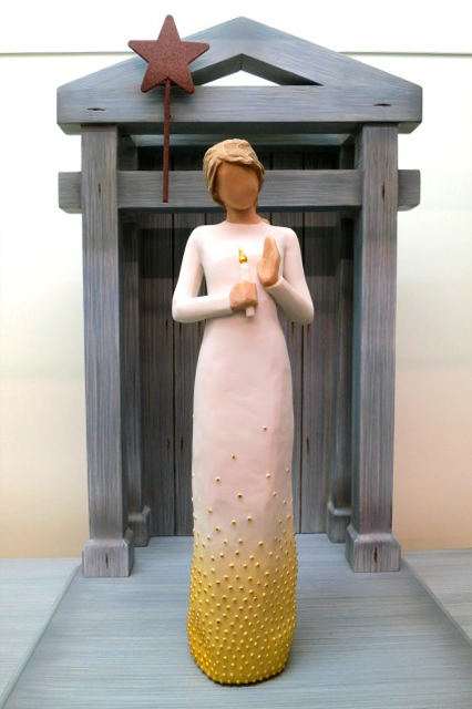 Statua ideata dalla nota artista Susan Lordi, realizzata in resina. La statua, dal design essenziale e moderno, rappresenta la protezione (Luminary of Love), un messaggio di speranza.